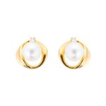 9ct Yellow Gold Fluid Pearl 0.04ct Stud Earrings